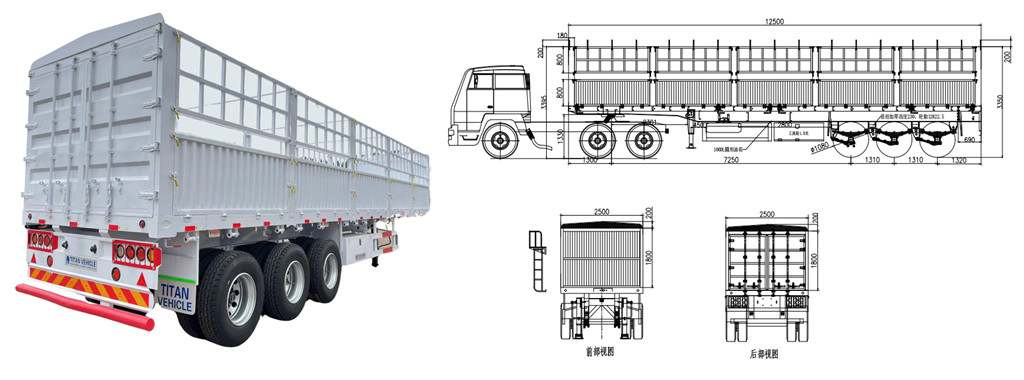 Specification of 3 axle 60 ton fence semi trailer