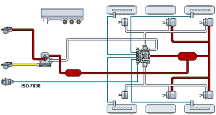 Automatic braking state in case of emweight on a trailersemi semi truckergency air failure
