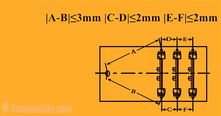 After driving for one month or 5000 kilometers for the first time, the wheelbase should be tested and adjusted according tcistern truckshow trucks semiso the picture on the right.