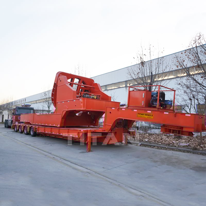 Tongya 9th-generation modular trailer with rotor blade adapter for transport rotor blade,wind blades. That is best solution to avoid obstaclvan semivan trailer manufacturerses, such as buildings and trees effectively, especially runlowering trailertrailer with fuel tankning on steep hills or narrow winding mountainous roads. Tongya semi truck deliverysemi dump truck trailer9th-generation rotor blade adapter that is mounted on modutrailers and tankerslowboy trailer sales near melar trailer.