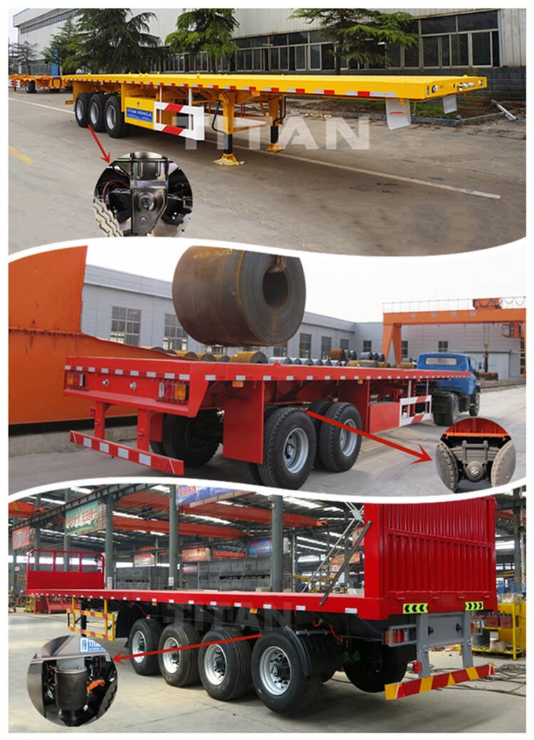 Common flat top semi trailer has four types according to the heavy duty trailermodel semi truck and trailernumber of axles, which are the 2 axllow pro flatbed trailerssemi truck eventse 40 foot flatbed semi trailers, 3 axles 40ft flatbed trailers, 4 axles 40 foot flat platform truck trailer, and the single point suspension logistics trailer.