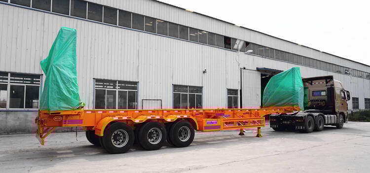 Container loader for sale is a self-loading trailer, typictrailer tank capacitytruck gasoline tankally skeletal, with two hydraulic lifting cranes to liftruck trailer flatbedsemi truck covert a container onto it. It can bestarting a semi truckdifferent types of semi trucks operated by the driver using controls on the side of the trailer or remote control.