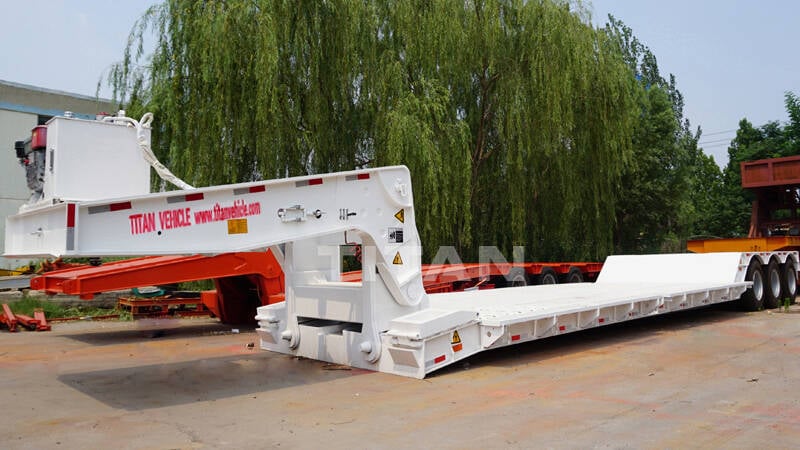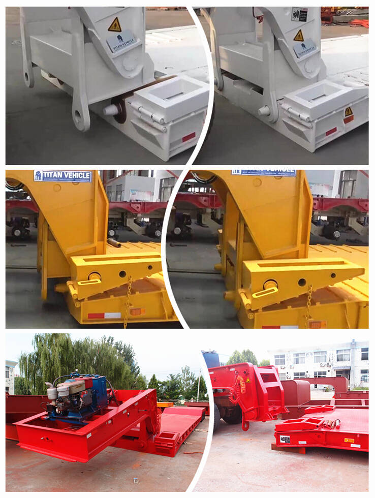 The gooseneck is a design with a hydraulic folding structure. When the structure folded, it&rsmore trailerstrailers inspectionquo;s a gooseneck to connect the trailer with theweight for trailertrailer truck with container prime mover. When it unfolded, it’s will touch the ground as a shallow slope for cargos loading. Compare to rear raheavy truck industrylow flatbed trailermps, it’s shallow and stable, could effective solutions for cargo loading.