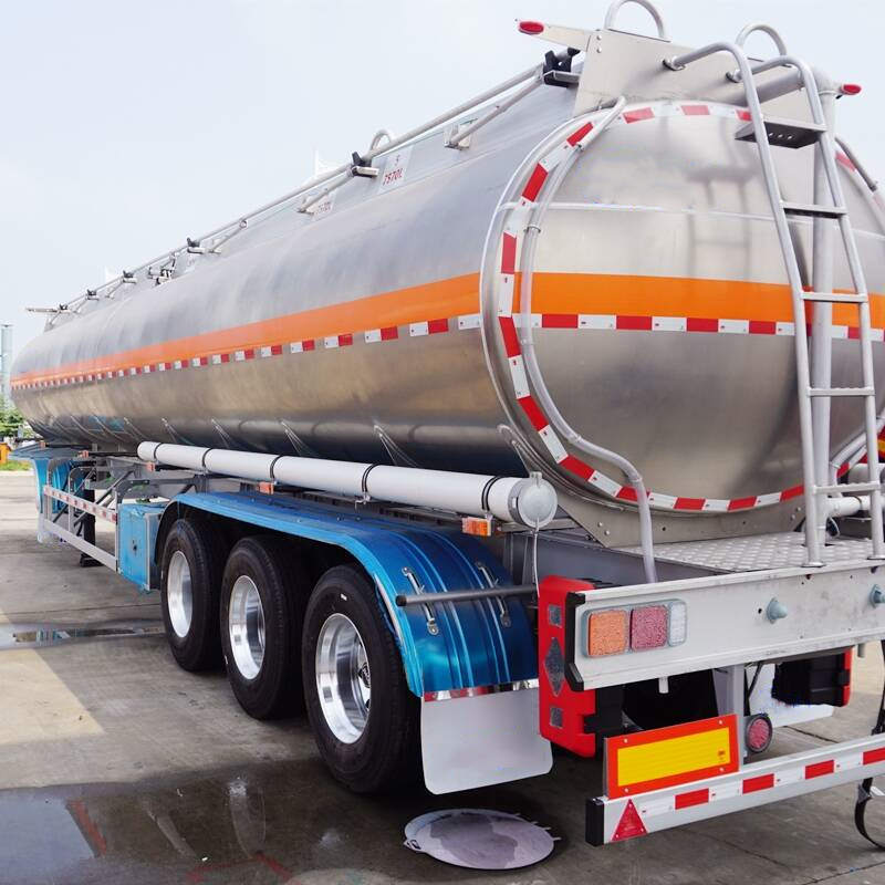 The tri axle aluminum fuel tanker trailer is used for carrying different liquid likesemi transportsemi trailer sales fuel, petrol, water, palm oil etc.