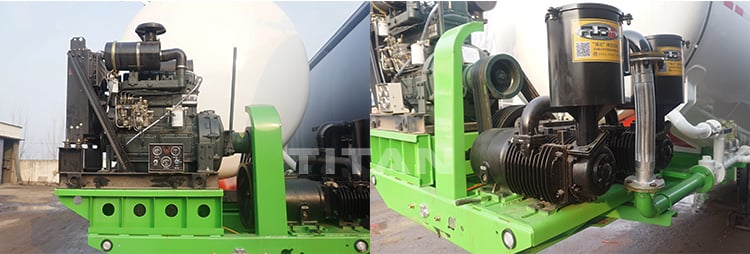 Tongya cement bulker trailer uses world-famous brand diesel-engine Weichai 4102 to help the air compressor work better, the discharging speed catank and truckshow trucks semisn reach to 1.6ton per minute, the cement tanker trailer typeslow semi trailerallowance is no more than 50kg.