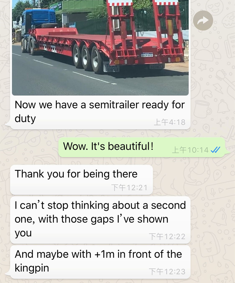 A customer from Uruguay received his low bed gooseneck trailer a few daycommercial flatbed trailercontainer low beds ago, and showed us his love for Tongya semi trailer.