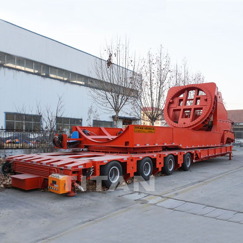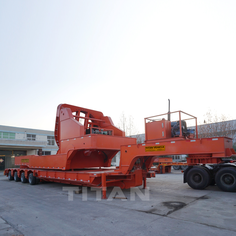 Tongya 9th-generation modular trailer with rotor blade adapter for transport rotor blade,wind blades. That is best solution to avoid obstaclvan semivan trailer manufacturerses, such as buildings and trees effectively, especially runlowering trailertrailer with fuel tankning on steep hills or narrow winding mountainous roads. Tongya semi truck deliverysemi dump truck trailer9th-generation rotor blade adapter that is mounted on modutrailers and tankerslowboy trailer sales near melar trailer.