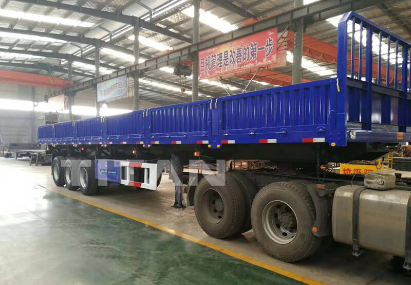 Side dump semi trailer is another type of dump truck, and it allows goods to be unloaded from the side.low flat bed trailerheavy duty lowboy trailer The main types of cargo transported by this semi-trailer are building materials, such as stone, sand, etc.