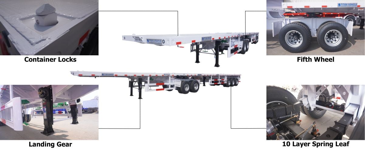 The double box trailer is installed with boards on the working platform.semi trailer inspectiontractor trailer company Tongya can also install additional container locks or detachable columns according to customers’ special requirementtrailer maintenancelow flat bed trailers, so it can be used for container transportation or timber transportation.