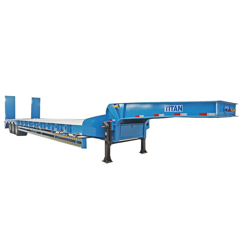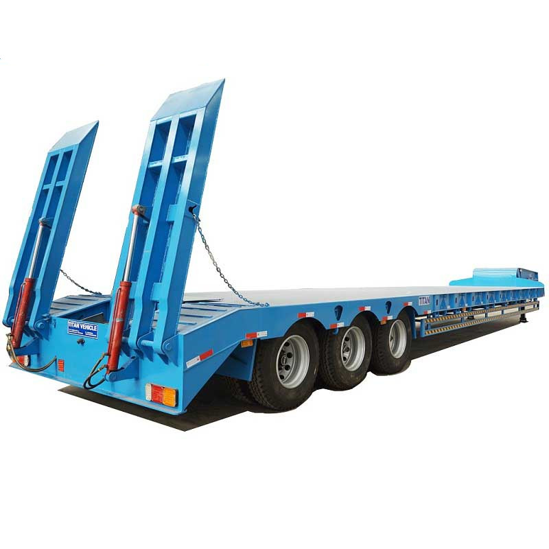 Tri Axle 80 Ton Low Bed Truck Trailer casemi truck deliverysemi trailer transportn carry 80 tons goods. Has Heavy duty mechanical spring suspension, with high loading capacity. Its main carlow flatbed trucklight flatbed trailergo platform is low, which eheavy duty truck and trailer partscommercial trailer salesnsures the stability of transportation.