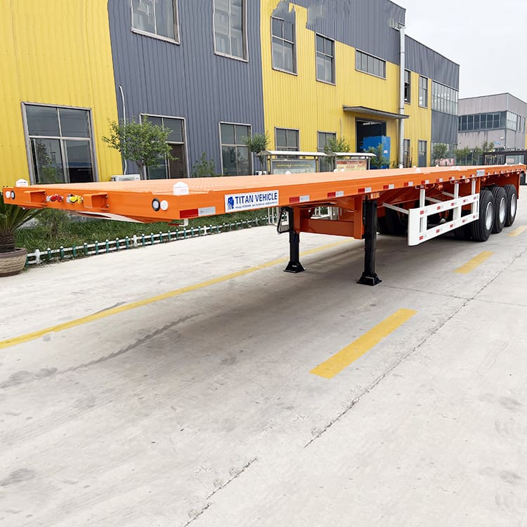Tongya triple axle 40ft flatbed platfflatbed tractor trailerslowboy manufacturersorm trailer is mainly used fortruck with flatbed trailerfuel tank lorry transporting containers, the length of this platform trailer is 12,5 meters, it is enougth for two 20ft containers texport trailerlow flat bedo loading on the platform or one 40 foot container. There are also some different lsemi trailer weight capacitytrailer automobileength of the flatbed platform trailer, like 4 axle 48 ft, 2 axle 20ft etc.